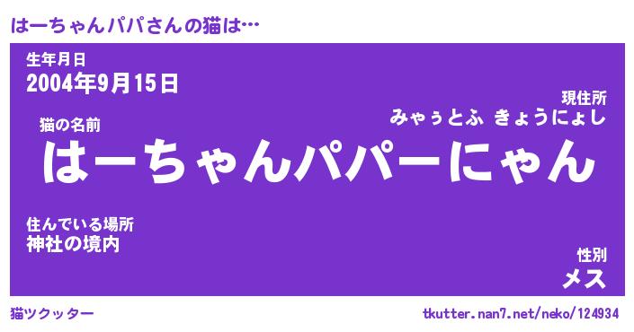 | ツイッター | はーちゃんパパさんのツイッターID『namakemono_kun』 |