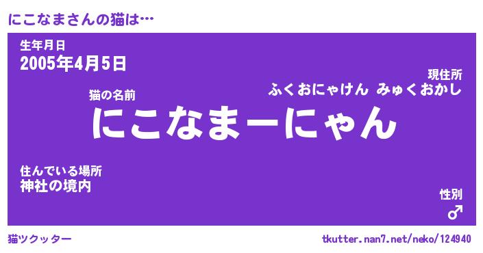 | ポケモン風あだ名 | 『ニコチュウ』『ニコナダネ』 |