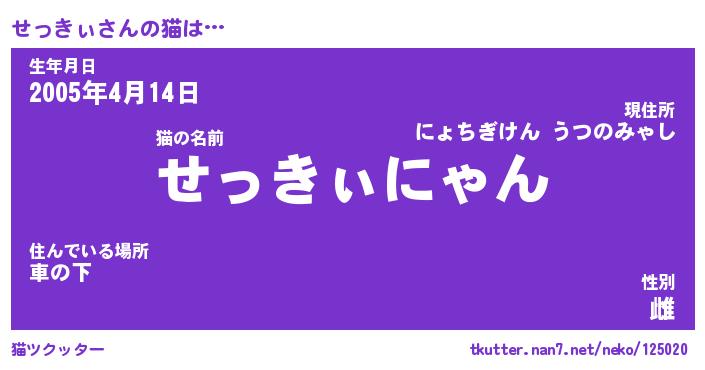 | 意味不明あだ名 | 『ペロリンせっきぃ』『永久保存せっきぃ』 |
