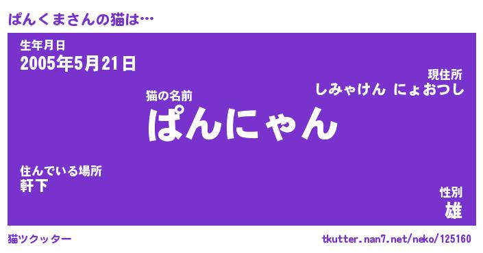 | 意味不明あだ名 | 『ペロリンぱんくま』『永久保存ぱんくま』 |
