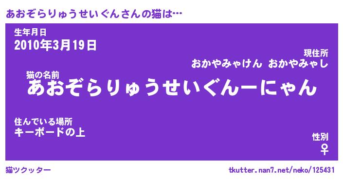 | 肩書あだ名 | 『あおぞらりゅうせいぐん店長』 |