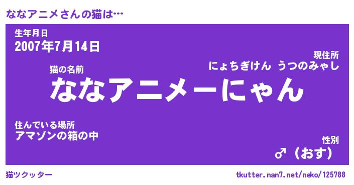 | 肩書あだ名 | 『ななアニメ御曹司』『ななアニメ大統領』 |