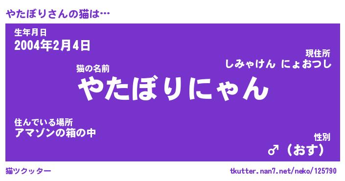 | 意味不明あだ名 | 『ペロリンやたぼり』『永久保存やたぼり』 |