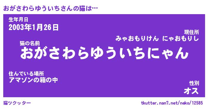 | 男性向けラノベタイトル風あだ名 | 『おがさわらゆういちの憂鬱』 |