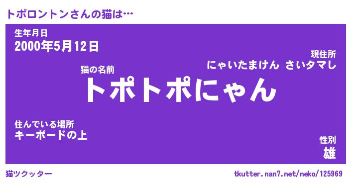 | 自動車の名前っぽいあだ名 | 『トポティマ』『トクア』『トント』 |