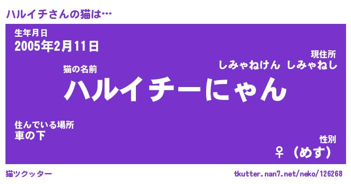 | ファンタジー風あだ名 | 『ハルフェル』『エターナルハルイチー』 |
