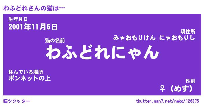 | 男性向けラノベタイトル風あだ名 | 『わふどれの憂鬱』 |