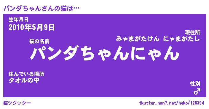 | ヒーロー風カッコイイあだ名 | 『スーパーパンダチャン』『魔戒騎士パン』 |