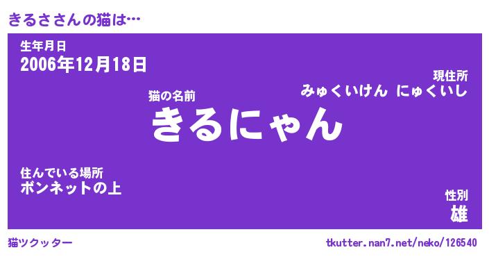 | ヘコむあだ名 | 『きるにゅー』『豆乳』『きるっ子』 |