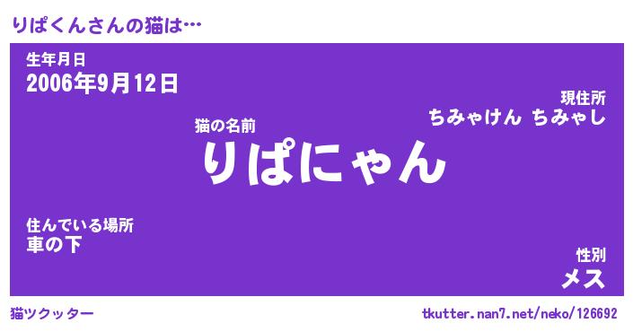| 意味不明あだ名 | 『ペロリンりぱくん』『永久保存りぱくん』 |