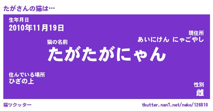 | ポケモン風あだ名 | 『タガチュウ』『タガダネ』『ヒタガ』 |