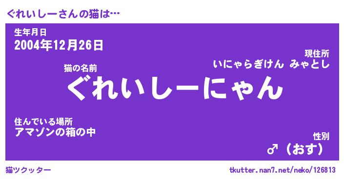| 男性向けラノベタイトル風あだ名 | 『ぐれいしーの憂鬱』 |
