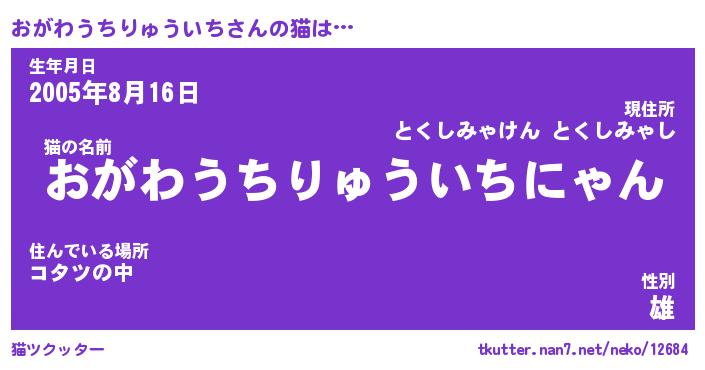 | 男性向けラノベタイトル風あだ名 | 『おがわうちりゅういちの憂鬱』 |