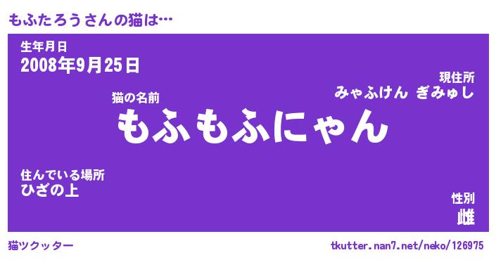 | ファンタジー風あだ名 | 『モフフェル』『エターナルモフタロウー』 |