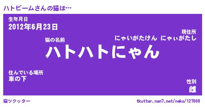 | ファンタジー風あだ名 | 『ハトフェル』『エターナルハトビームー』 |