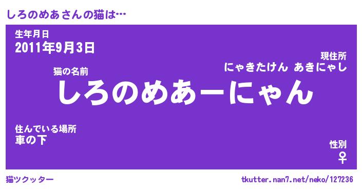 | 2回繰り返すあだ名 | 『しろしろ』『ししろろ』『ぷーぷー』 |