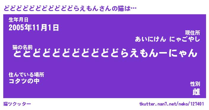| 男性向けラノベタイトル風あだ名 | 『ドドドドドドドドドドドラエモンアートオンライン』 |