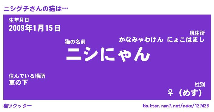 | 2回繰り返すあだ名 | 『ニシニシ』『ニニシシ』『ぎーぎー』 |