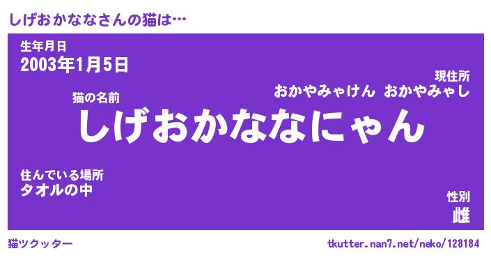 | 男性向けラノベタイトル風あだ名 | 『しげおかななの憂鬱』 |