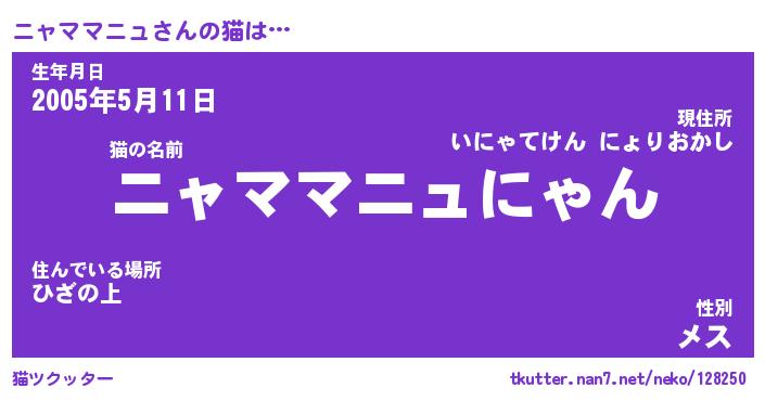 | 肩書あだ名 | 『ニャママニュ店長』『ニャママニュ班長』 |