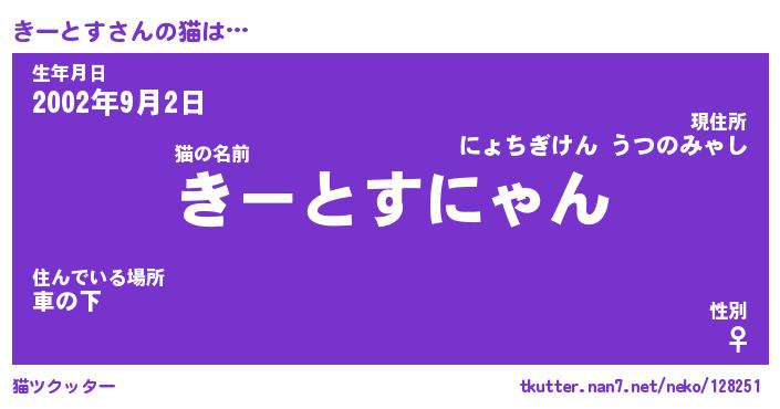 | 意味不明あだ名 | 『ペロリンきーとす』『永久保存きーとす』 |