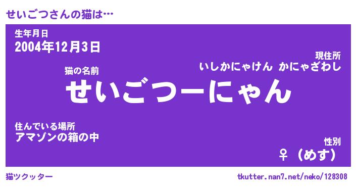 | 意味不明あだ名 | 『ペロリンせいごつ』『永久保存せいごつ』 |