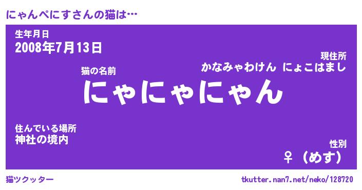 | ヒーロー風カッコイイあだ名 | 『スーパーニャンペニス』『天弓騎士ニャ』 |