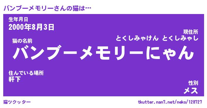 | 男性向けラノベタイトル風あだ名 | 『バンブーメモリーの憂鬱』 |