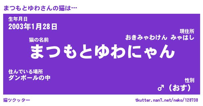 | 男性向けラノベタイトル風あだ名 | 『まつもとゆわの憂鬱』 |