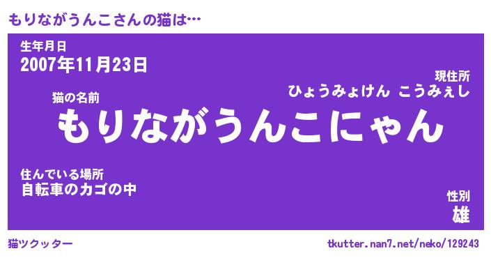 | 男性向けラノベタイトル風あだ名 | 『もりながうんこの憂鬱』 |