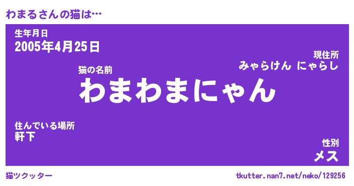 | 2回繰り返すあだ名 | 『わまわま』『わわまま』『ぬめぬめ』 |