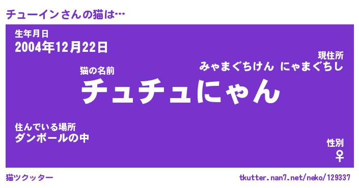| 2回繰り返すあだ名 | 『チュチュ』『チチュュ』『にぎにぎ』 |