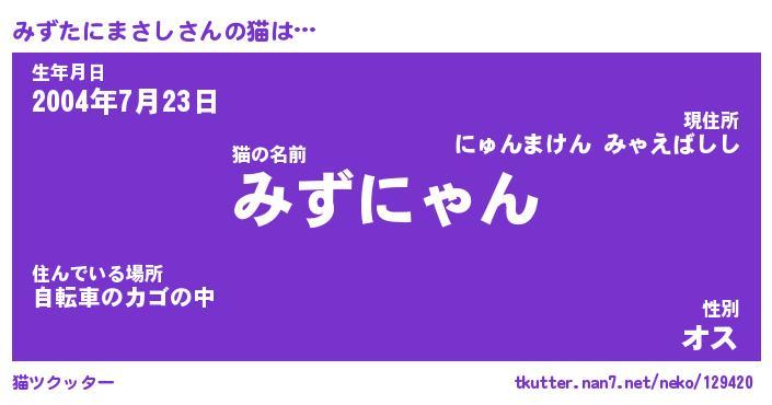 | ポケモン風あだ名 | 『ミズチュウ』『ミズタダネ』 |