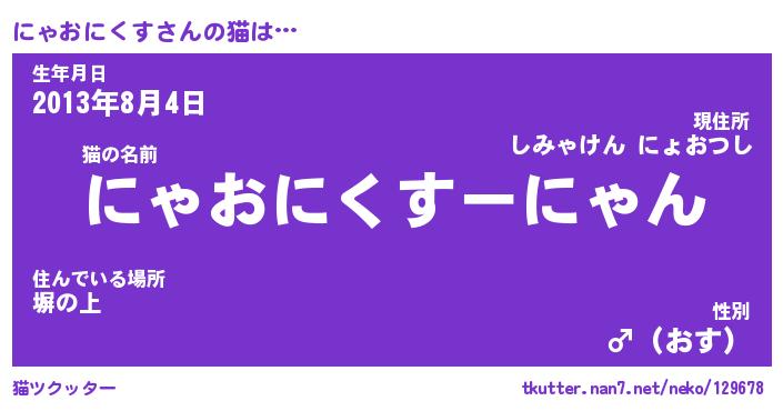 | 肩書あだ名 | 『にゃおにくすCEO』『にゃおにくす大統領』 |