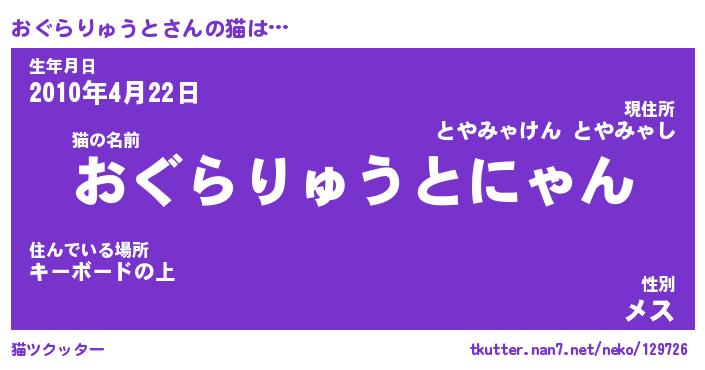 | 男性向けラノベタイトル風あだ名 | 『おぐらりゅうとの憂鬱』 |