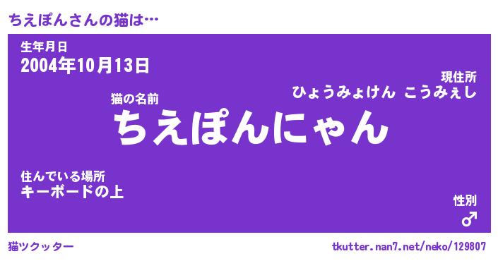 | ファンタジー風あだ名 | 『チエフェル』『エターナルチエポンー』 |