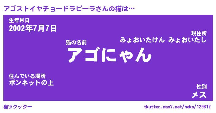 | ツイッター | アゴストイヤチョードラピーラさんのツイッターID『masyumaro_man』 |