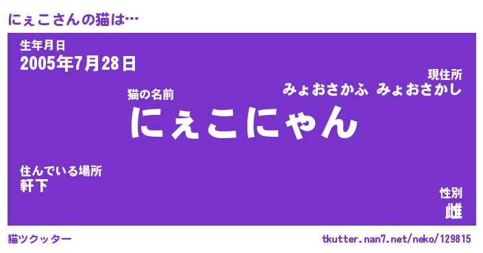 | ポケモン風あだ名 | 『ニェチュウ』『ニェコダネ』 |