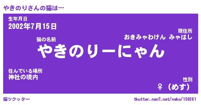 | 生年月日? …「くろねこ」 | 8月01日 10:16 |
