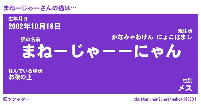 | 生年月日? …「くろねこ」 | 8月01日 10:16 |