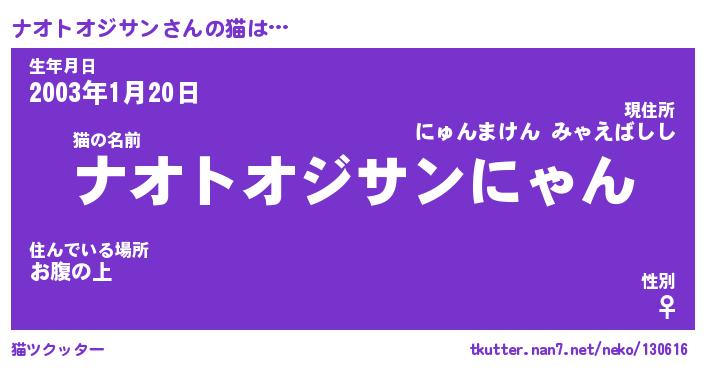 | 生年月日? …「くろねこ」 | 8月01日 10:16 |