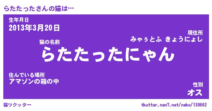 | ポケモン風あだ名 | 『ラタチュウ』『ラタタダネ』 |