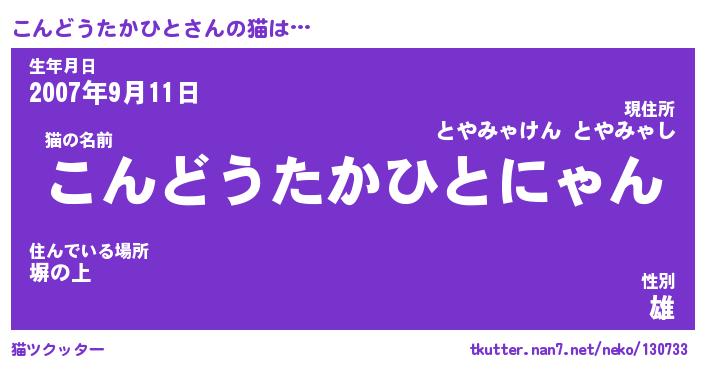| ツイッター | こんどうたかひとさんのツイッターID『konnyaku_man』 |