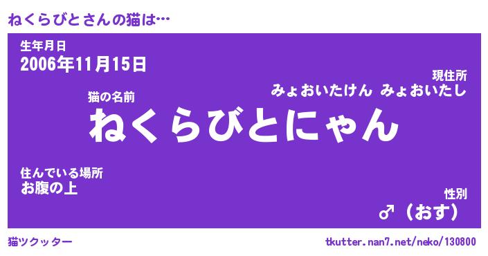 | 生年月日? …「くろねこ」 | 8月01日 10:16 |