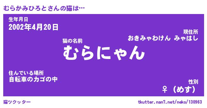 | ポケモン風あだ名 | 『ムラチュウ』『ムラカダネ』 |