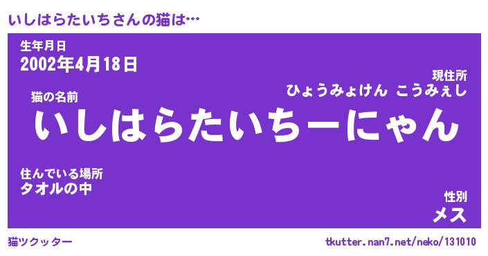 | 生年月日? …「くろねこ」 | 8月01日 10:16 |