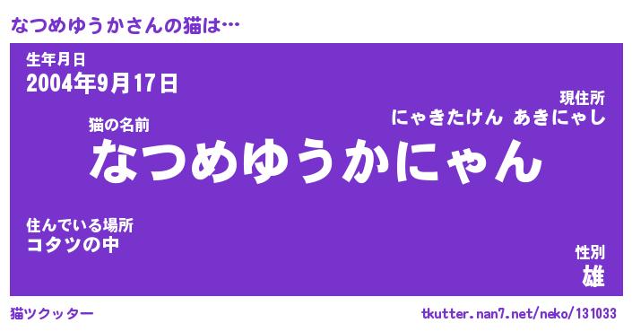 | ポケモン風あだ名 | 『ナツチュウ』『ナツメダネ』 |
