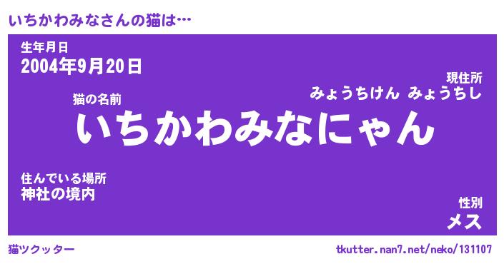 | ヒーロー風カッコイイあだ名 | 『スーパーイチカワミナ』『天弓騎士イチ』 |