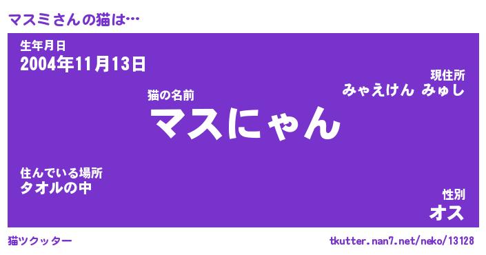 | ファンタジー風あだ名 | 『マスフェル』『エターナルマスミー』 |