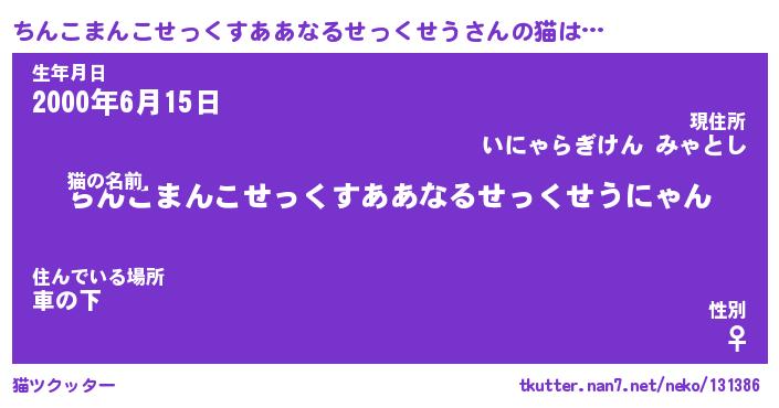 | 生年月日? …「くろねこ」 | 8月01日 10:16 |